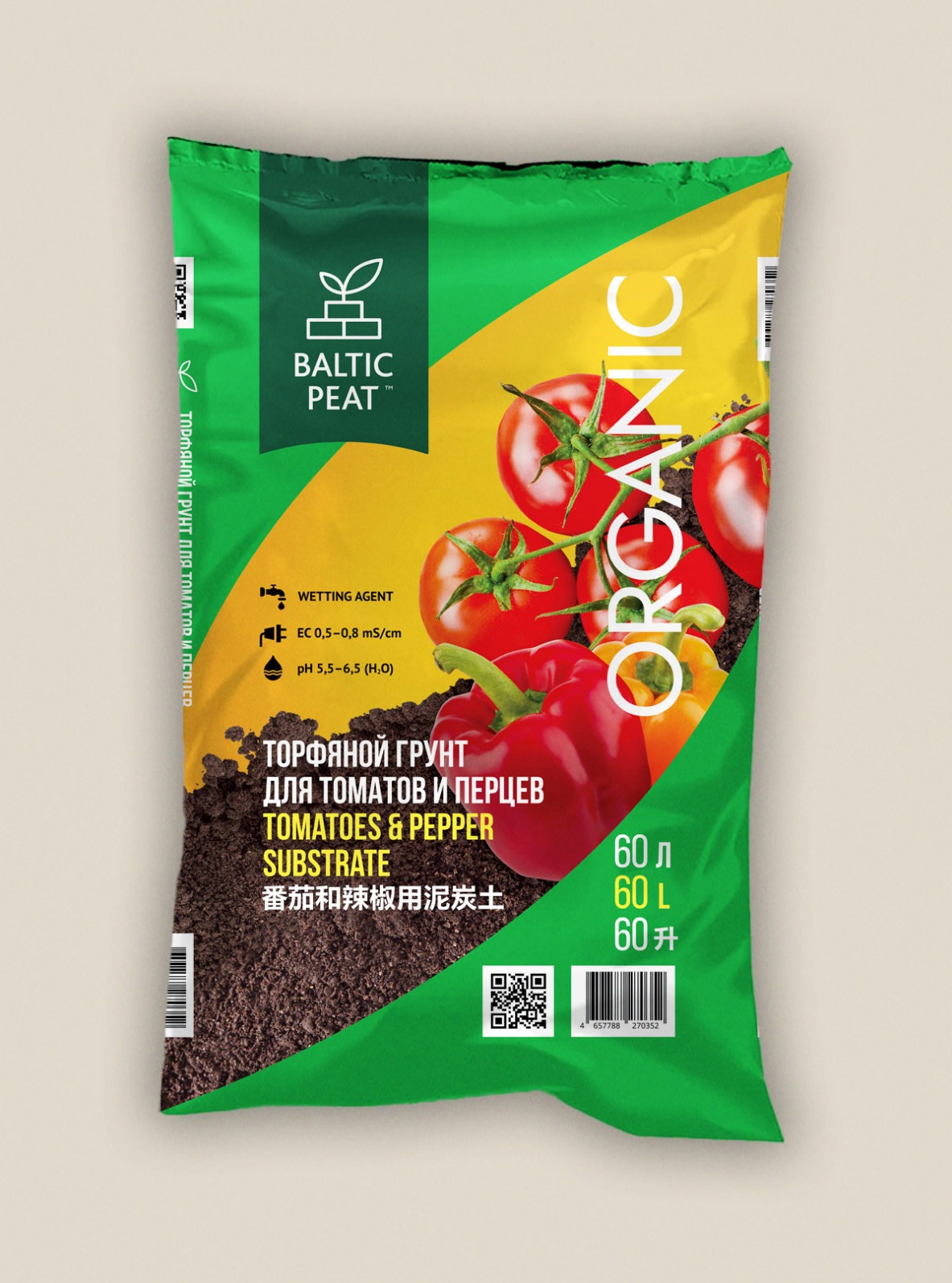 Полностью готовый к применению торфяной грунт BalticPeat для выращивания томатов, перцев, баклажанов, а также их подкормки в период роста и плодоношения, подходит при пересадке, пикировке, перевалке. Грунт содержит сбалансированное содержание комплексного удобрения по структуре NPK. Такая рецептура необходима для быстрого, здорового развития саженцев и самих растений паслёновых культур.